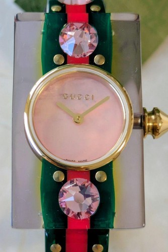 These beautiful watches with white or pink mother of pearl dials are set in diamonds (such as with the Diamantissima or the G-Timeless range) and surrounded by stainless steel to last a lifetime. Choose one of the distinctive codes of the House of Gucci as your dial motif: bee, cat, hearts, or stars. The mother of pearl Gucci watch is a timeless classic that's sure to never go out of style!